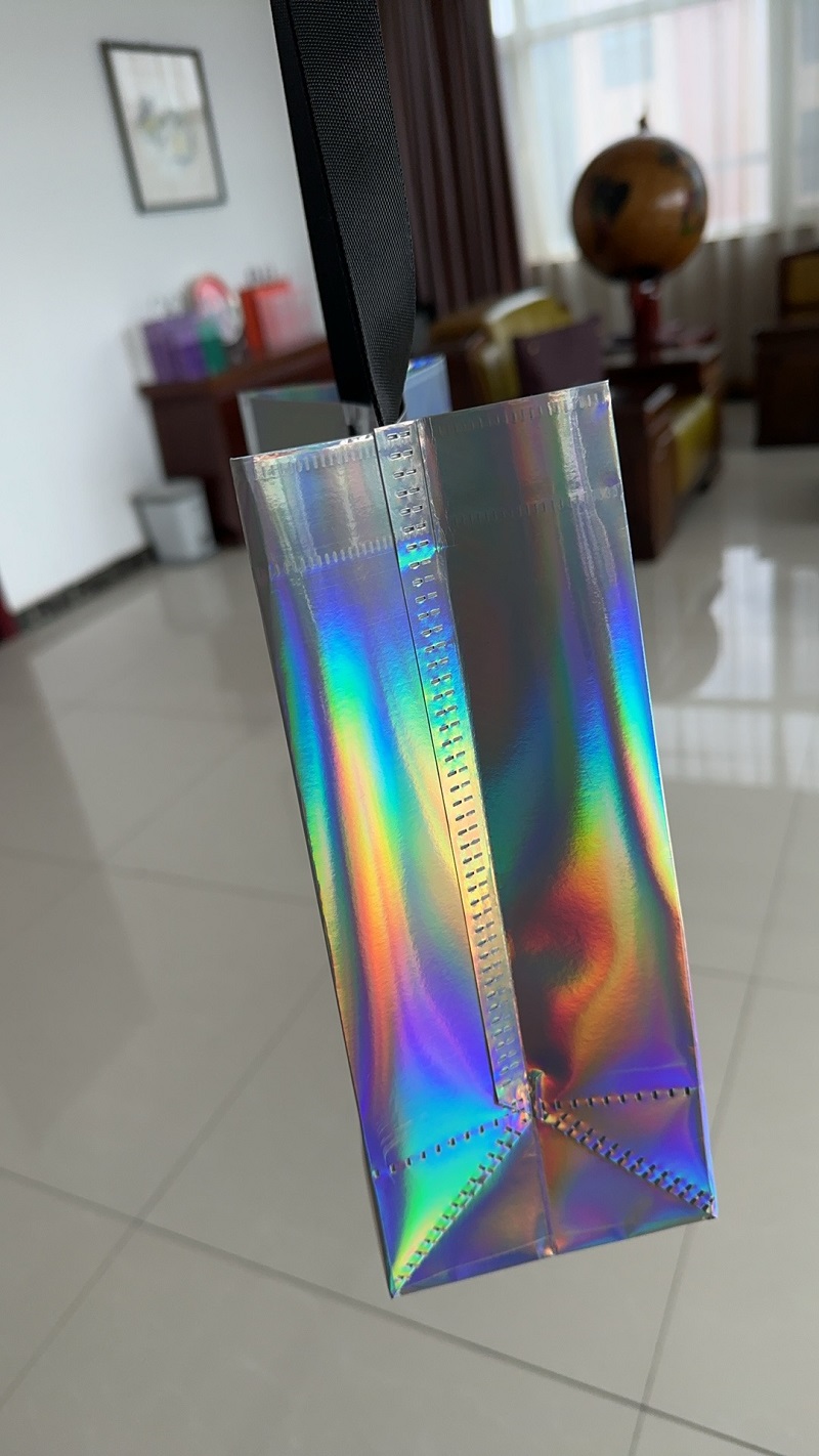 RGS PACKAGING on ylpeä voidessaan esitellä uusimman innovaatiomme - theLaserkalvolla laminoitu lahjakassi. Tämä uusi tuote edustaa suurta edistystä pakkaustekniikassa, ja se on valmistettu täysin uudella prosessilla, joka eliminoi perinteisten teippien ja ompelukoneiden tarpeen.