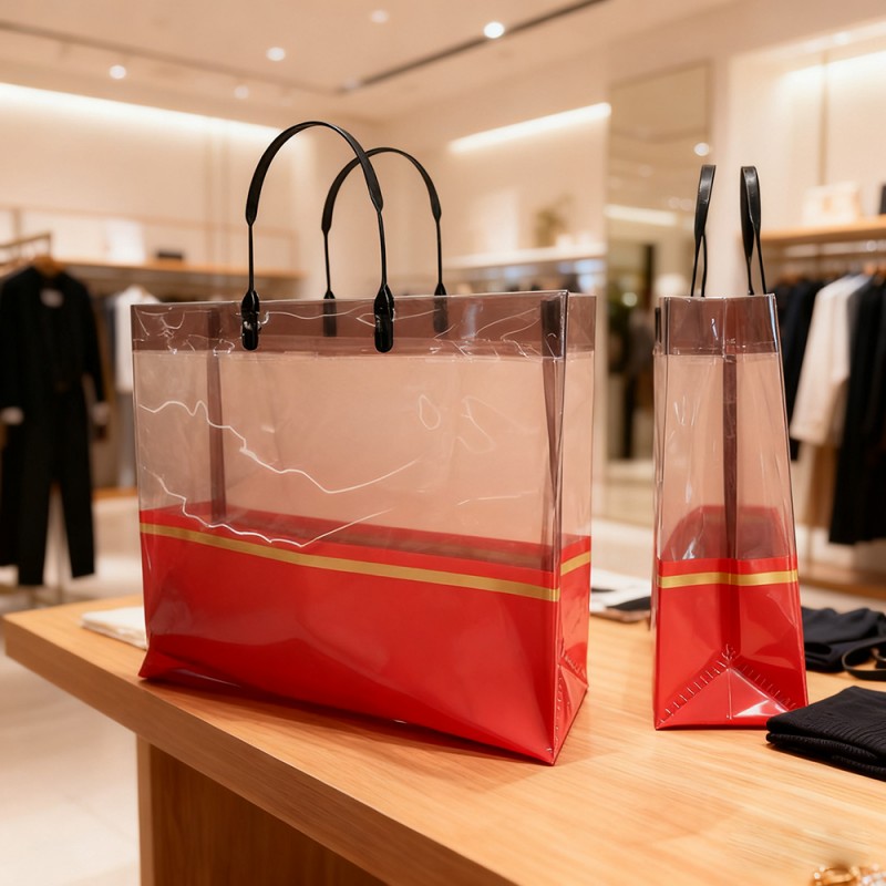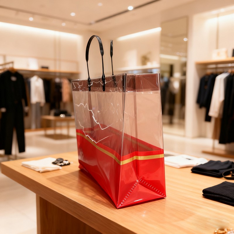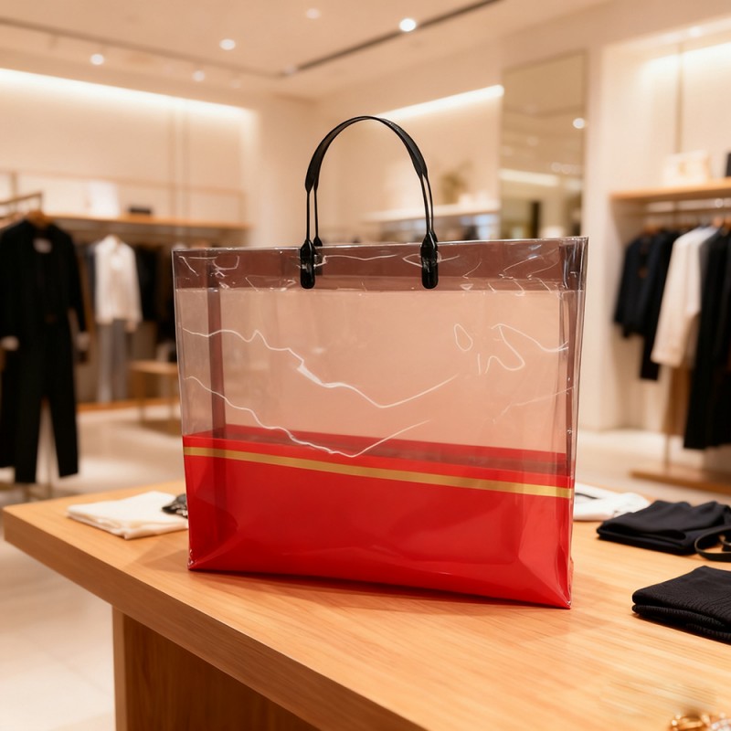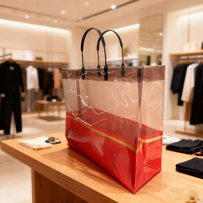 Ensiluokkainen CPP-materiaali: kristallinkirkas näkyvyys, joka esittelee sisällön kauniisti, tämä laukku on valmistettu erittäin läpinäkyvästä valetusta polypropeenista (CPP). Todella erikoisen tekee siitä sen, että se säilyttää erinomaisen sitkeyden ja repeytyskestävyyden herkästä ulkonäöstään huolimatta. Vedenpitävä pinta todella suojaa esineitäsi roiskeilta ja kosteudelta, mikä tarkoittaa, että voit luottaa pitkäkestoiseen suorituskykyyn myös päivittäisessä käytössä. Ylellinen kultanauhakorostus: Laukun vyötärölinjaa pitkin kulkeva tyylikäs kultainen folioraita lisää täydellisen hienostuneisuuden. On hämmästyttävää, kuinka tämä hienovarainen yksityiskohta onnistuu kohottamaan koko estetiikkaa ylikuormittamatta minimalistista muotoilua. Tämä yhdistelmä tekee laukusta erityisen hyvin sopivan huippuluokan vähittäiskaupan ympäristöihin ja erityisiin lahjanjakotilaisuuksiin. Vahvistetut kahvat ja kantavuus: Ergonomisesti muotoillut kahvat, jotka huomaat, on kaksoisommeltu ja vahvistettu huolellisesti kaikilla rasituspisteillä. Tämä älykäs rakenne tarjoaa poikkeuksellisen mukavuuden kuljettaessasi raskaampia esineitä sisällä. Lisäksi laukun rakenteellinen pohja tekee erinomaista työtä lisäämällä vakautta - se kestää luotettavasti jopa 8 kilon painoa menettämättä alkuperäistä muotoaan. Mukautettavat brändäysvaihtoehdot: Kehittyneen Hot Stamping -tulostustekniikan avulla voimme mukauttaa nämä pussit logojesi, kuvioidesi tai mainosviestien tulostukseen. Läpinäkyvä tausta toimii loistavasti saadakseen mallit esiin ja luomaan siitä, mikä pohjimmiltaan muuttuu liikkuvaksi mainokseksi brändisi näkyvyydelle. Monet yritykset pitävät tätä ominaisuutta uskomattoman arvokkaana markkinointikampanjoissaan ja myös brändin näkyvyyden edistämisessä. Ympäristöystävällinen ja uudelleenkäytettävä: Tässä on jotain tärkeää - toisin kuin kertakäyttöiset muovipussit, tämä CPP-laukku on täysin uudelleenkäytettävä ja kierrätettävä. Se tukee aktiivisesti kestävän kehityksen aloitteitasi ja tarjoaa samalla kustannustehokkaan pakkausratkaisun. Ympäristötietoiset yritykset arvostavat erityisesti sitä, kuinka siinä yhdistyvät käytännöllinen toimivuus ja ekologinen vastuu.
