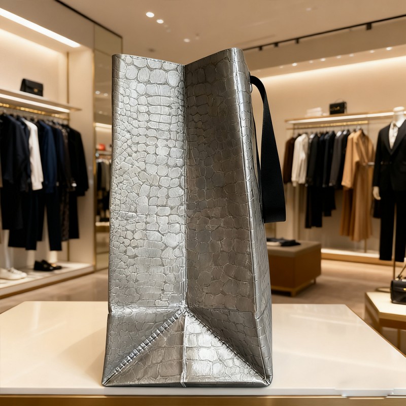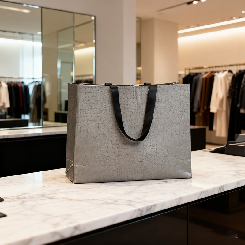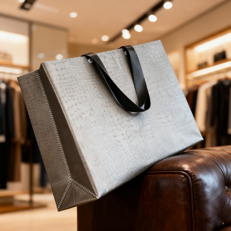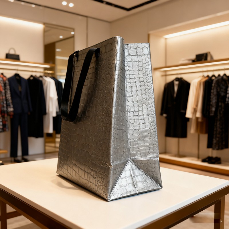 Tyylikäs pintakäsittely: VCM-kerros luo huippuluokan nahkamaisen pinnan, jolla on sileä kosketus ja visuaalisesti näyttävä ulkonäkö. Se on kiiltävä tai mattapintainen, mikä voi välittömästi välittää ylellisyyden tunteen. Erinomainen kestävyys: Se kestää erinomaisesti naarmuja, kulumista ja päivittäistä kulumista. Tämä varmistaa, että tuote voi pysyä alkuperäisessä tilassaan pitkään, mikä tekee pussista erittäin uudelleenkäytettävän. Vedenpitävä ja kosteudenkestävä: Tämä tuote voi tehokkaasti estää ylivuotoa, kosteutta ja kosteutta ja tarjoaa erinomaisen suojan sisällölle. Erinomainen tulostettavuus: Täysin sileä VCM-pinta on ihanteellinen kangas teräväpiirtotulostukseen. Se käyttää offset-, syväpaino- tai silkkipainotekniikoita, jotta logosi ja taideteokset ovat poikkeuksellisen selkeät, eloisat ja värikkäät. Henkilökohtainen räätälöinti: Toissijaisilla prosesseilla, kuten kuumaleimauksella (kulta, hopea) ja silkkipainatus, voit parantaa suunnitteluasi entisestään. Nämä vaihtoehdot lisäävät tuntokykyä ja moniaistista ulottuvuutta brändiisi. Kestävä rakenne: Käytämme erittäin lujia, repeytymisen kestäviä materiaaleja varmistaaksemme täydellisen rakenteen. Kahva on integroitu täydellisesti tuotteeseen ultraäänipuristuksen avulla, mikä takaa luotettavan lujuuden raskaampien esineiden kuljettamiseen. Käytännöllinen uudelleenkäytettävyys: Kestävyyden ja ajattoman suunnittelun yhdistelmä rohkaisee asiakkaita käyttämään laukkuja uudelleen jokapäiväisessä elämässään. Tämä tekee pakkauksestasi kestävän markkinointityökalun, joka mainostaa brändiäsi pitkään ensimmäisen ostoksesi jälkeen.